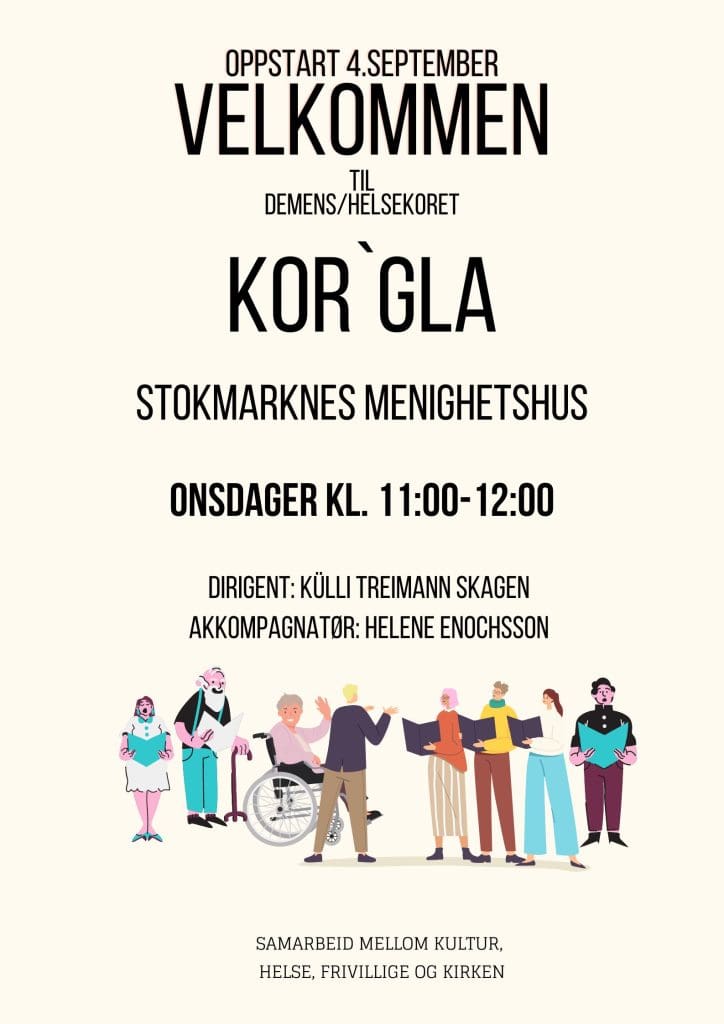 4.september har vi gleden av å invitere til høstens første korøving med helse/demenskoret Kor`Gla.